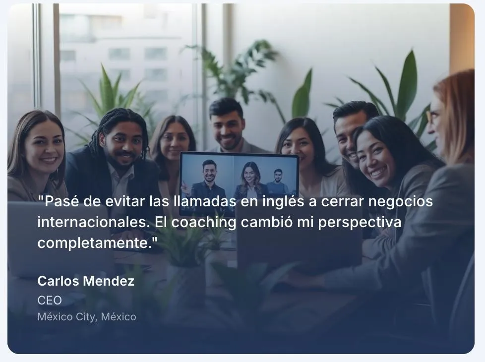 Coaching de inglés empresarial para ejecutivos que necesitan liderar, negociar e influir en el mercado global.